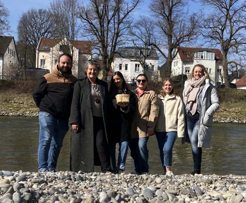 Vor einiger Zeit übergaben die Kolleg*innen die gesammelten Muscheln im Rahmen eines kleinen Rituals an die Isar und vertrauten sie dem Fluss an. „Erinnern ist ein wichtiger Teil unserer Haltung in der Begleitung“, sagt Zentrumsleitung Bettina Mayer (im Bild 2.v.l.). „Die Menschen, die wir begleiten durften, bleiben Teil unserer Geschichte.“